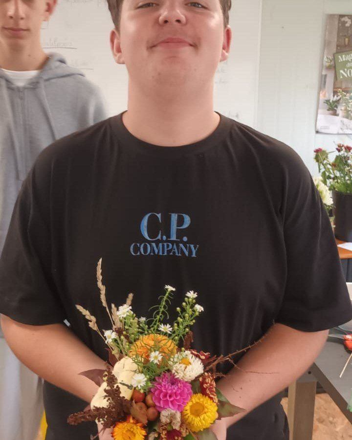 Les élèves de CAP 1ʳᵉ année Métiers de l’Agriculture ont laissé exprimer leur créativité lors d’un atelier d’initiation aux compositions piquées automnales ✨ Bravo à eux pour ces premières réalisations hautes en couleurs !