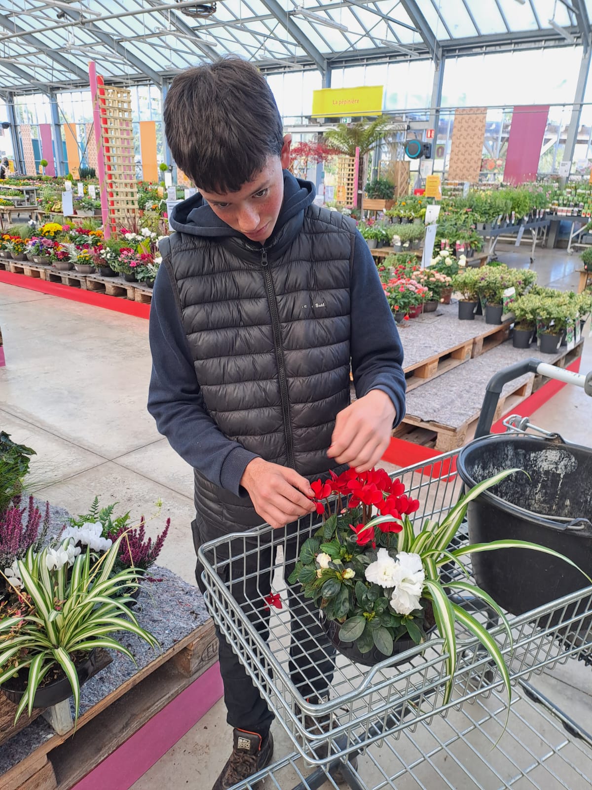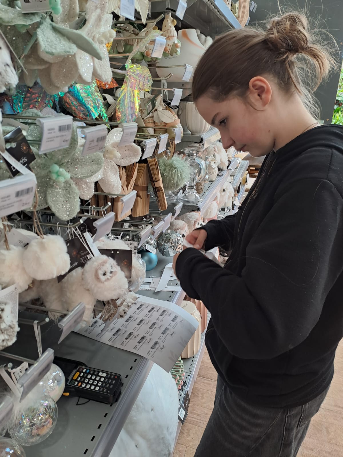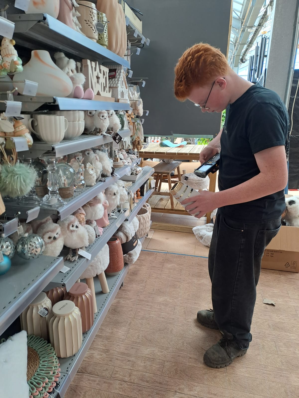 Au programme : briefing de départ, installation du rayon guirlandes lumineuses de Noël, étiquetage produits, nettoyage et soins des plantes