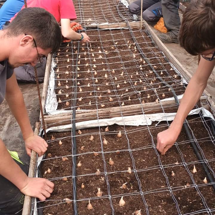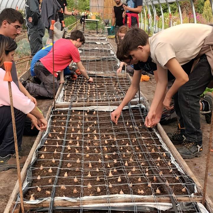 Les élèves de CAP Métiers de l’Agriculture 1ère année ont participé à la mise en place et à la plantation des bulbes de freesia dans le tunnel de floriculture.