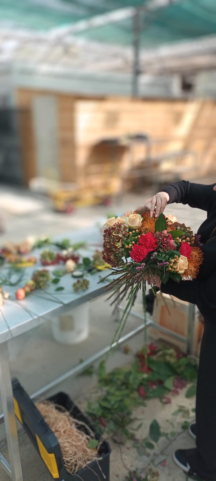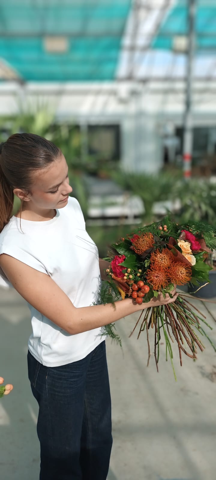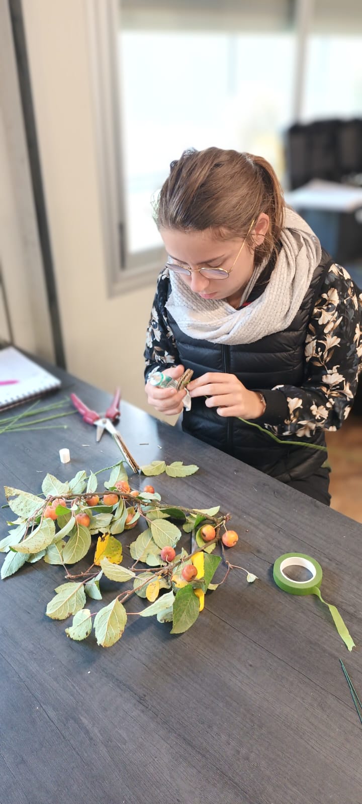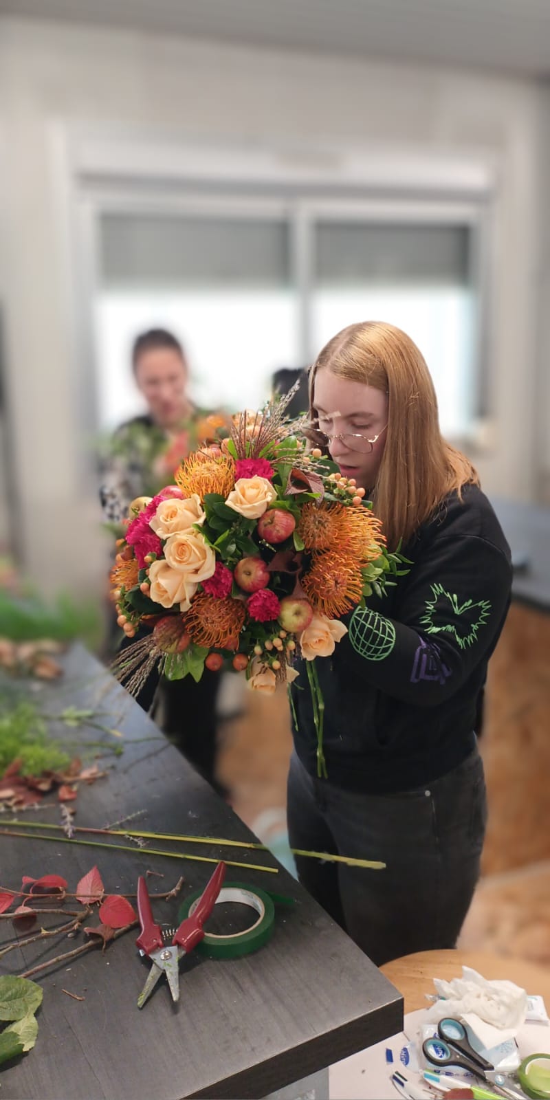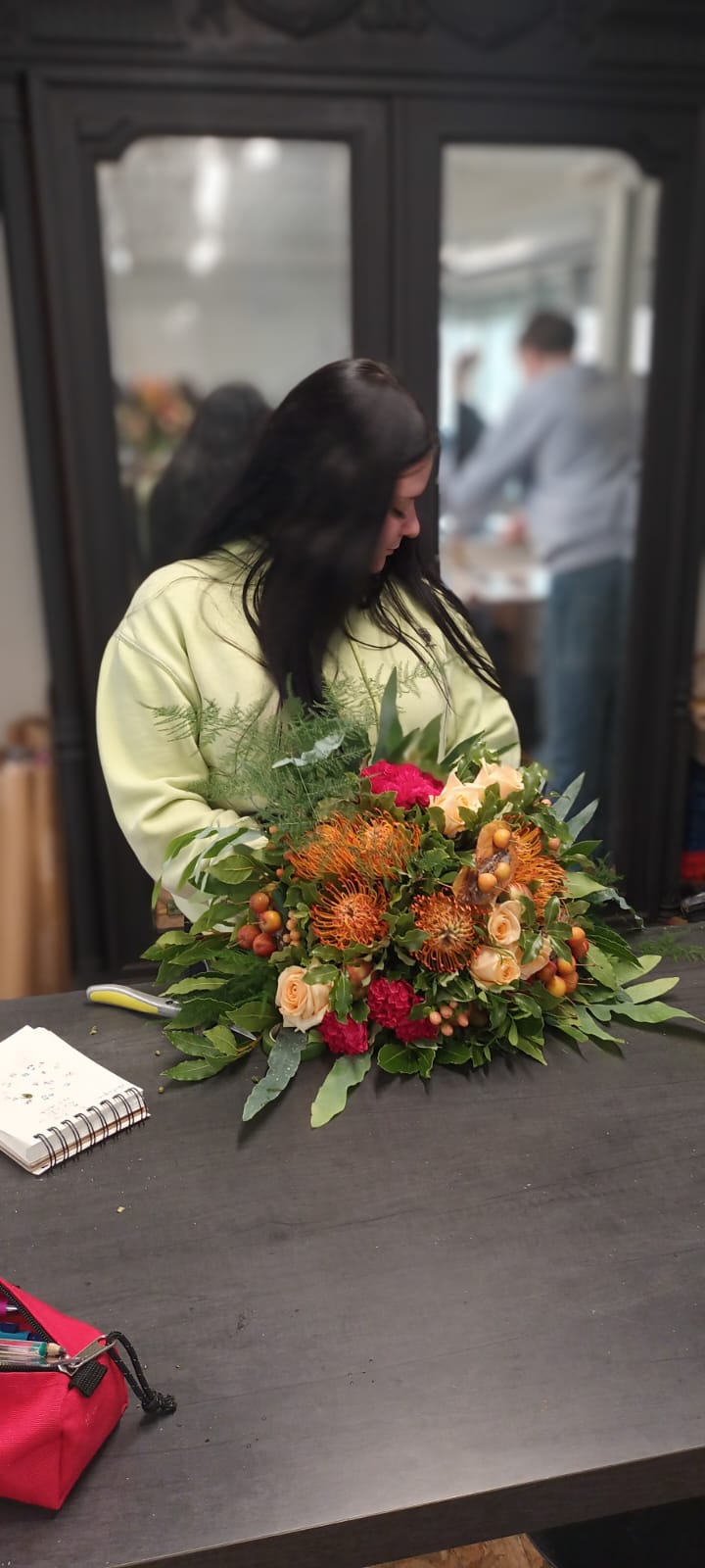 Réalisation de bouquets liés ronds de style décoratif, asymétrique par masse avec les apprentis en CAP Fleuriste 2ᵉ année et en un an.Un bel exercice de créativité et de technique florale. Bravo pour le résultat