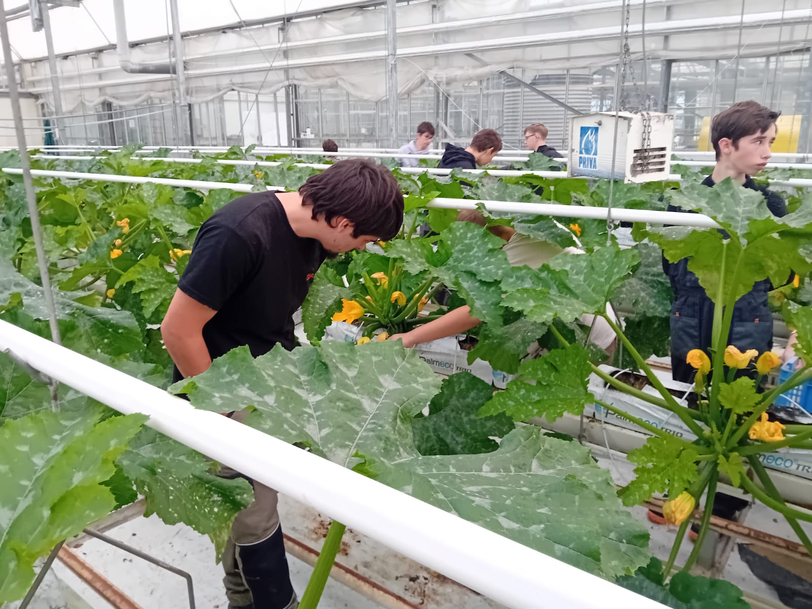 Récolte de courgettes sous serres, pour les CAPA 1ʳᵉ année Métiers de l’Agriculture !