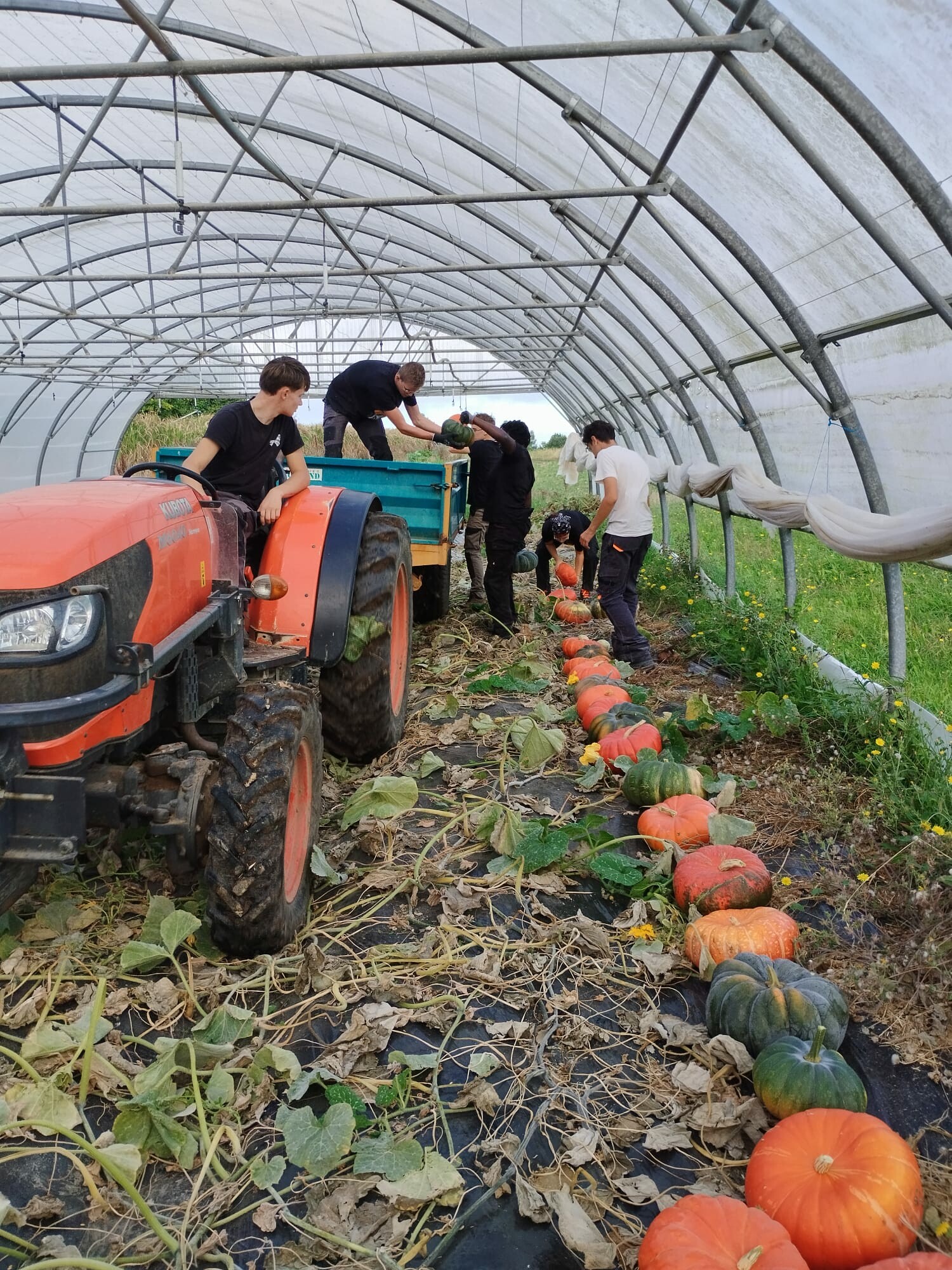 Nos élèves de 1ère Conduite de Productions Horticoles sont à l’œuvre pour récolter les potirons 100% bio !